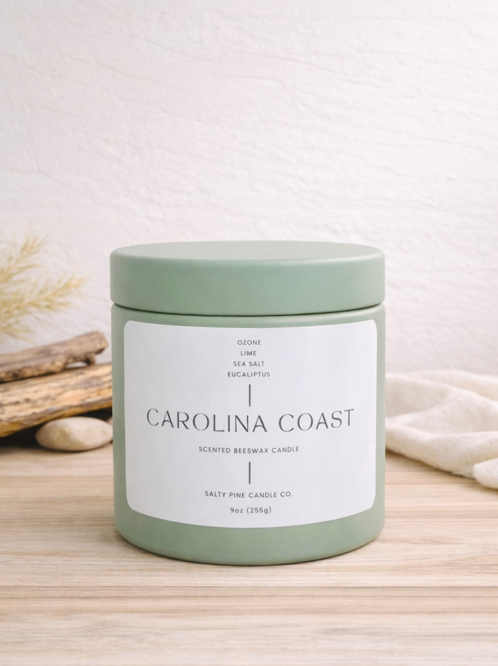 Crafted in our signature beeswax blend, this candle delivers a smooth burn and a warm, modern glow — inspired by the quiet rhythm of the Carolina shoreline.