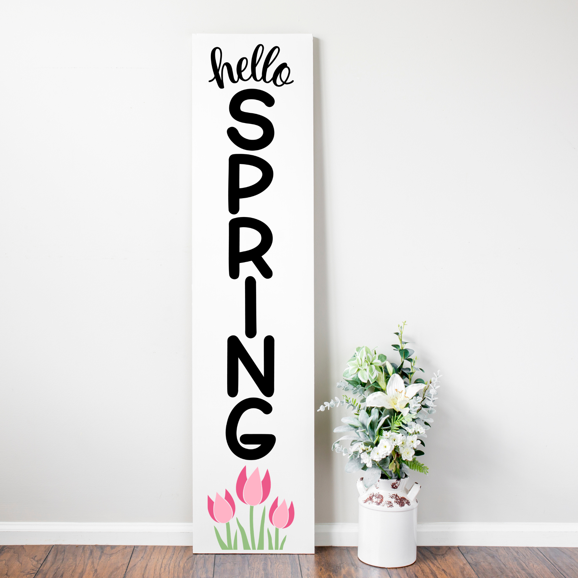 The tulip artwork adds a cheerful, garden-inspired touch while maintaining a clean, modern farmhouse feel. Its vertical design makes it perfect for leaning beside your front door, styling next to planters, or brightening an indoor entry hall.